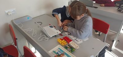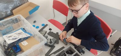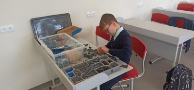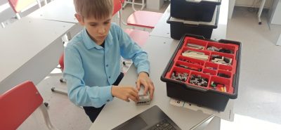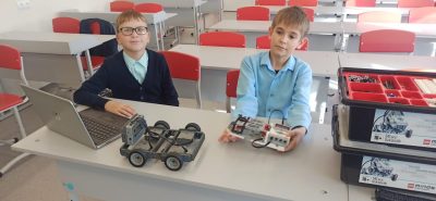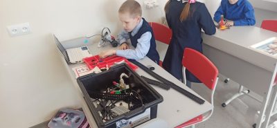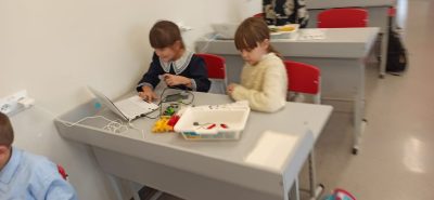 На занятии ребята активно занялись конструированием своих первых проектов в робототехнике, познакомились с первыми механизмами, такими как передача крутящего момента с помощью шестерен и с помощью ремня.