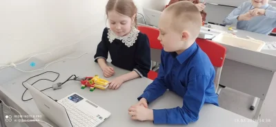 На занятии ребята занимались сборкой моделей на свободную тему. В итоге получились очень интересные решения — краб, футбольные болельщики, крокодил. Также каждую модель запрограммировали на осуществление действий в зависимости от датчиков, которые в ней присутствуют.